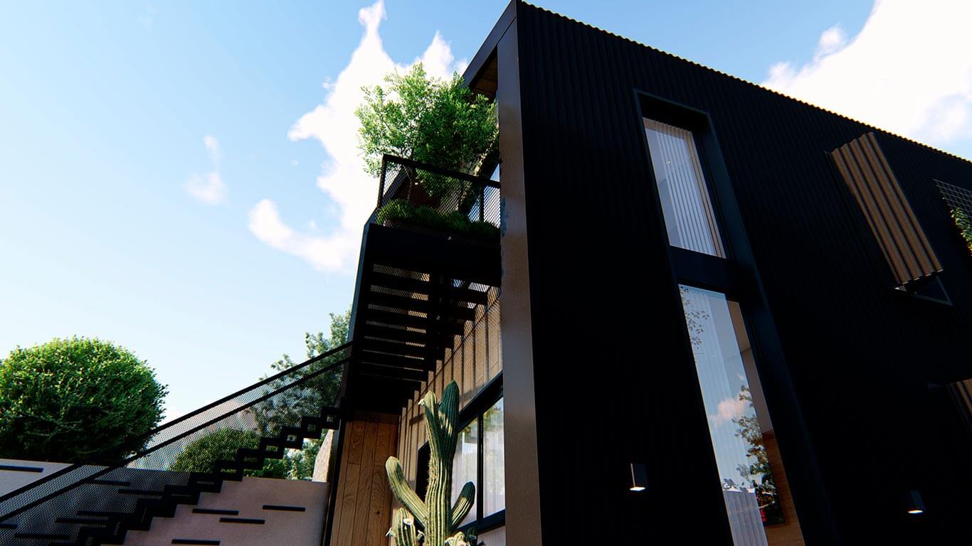 Volumetría simple, materiales nobles y sin manteniendo fueron las premisas de nuestro amigo de la vida y el trabajo para este encargo, en respuesta a eso, diseñamos esta envolvente de chapa sinusoidal negra que alberga 1 taller de trabajo en principio y luego se convierte en 4 unidades funcionales independientes de 2 ambientes cada una.